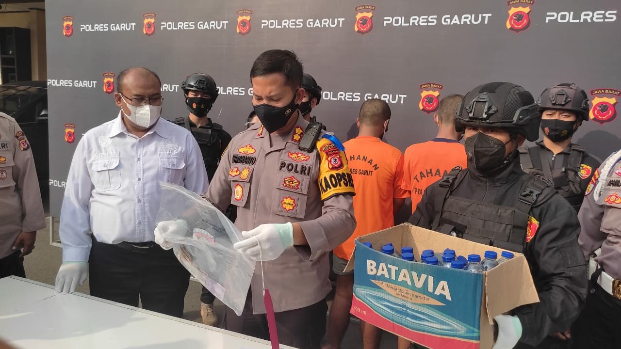 Kapolres Garut AKBP Wirdhanto Hadicaksono S.I.K., M.Si mengatakan bahwa kedua orang tersebut ditangkap jajaran team Sancang sering melakukan menjual paksa air mineral kepada supir truk maupun elf yang melintas di jalur Garut Selatan.