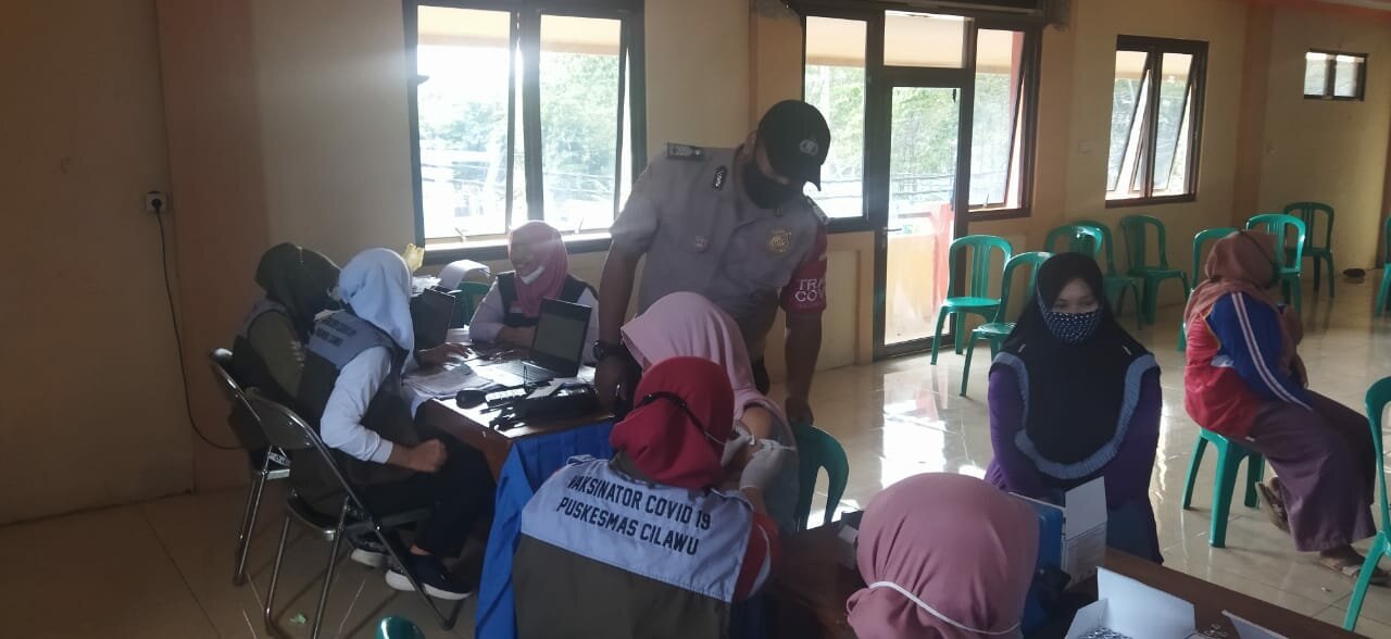 Selain pembagian masker, Polsek Cilawu juga bekerjasama dengan UPT Puskesmas Cilawu menggelar Gerai Vaksin TNI – POLRI di Desa Margalaksana untuk Vaksin ke 1 dan Vaksin ke 2.