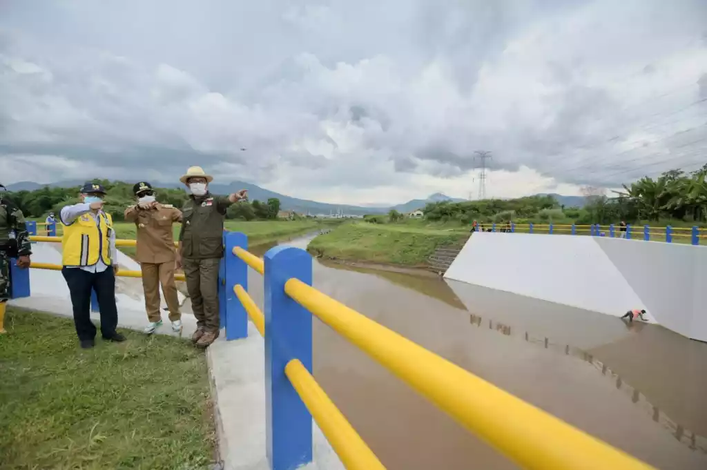 TINTAJABAR.COM, BANDUNG – Gubernur Jawa Barat Ridwan Kamil meninjau sodetan atau jalan banjir Cisangkuy yang dibangun sebagai salah satu infrastruktur pengendali banjir Bandung Selatan. Tinjauan lapangan ini untuk memastikan penanganan banjir terus dilakukan.