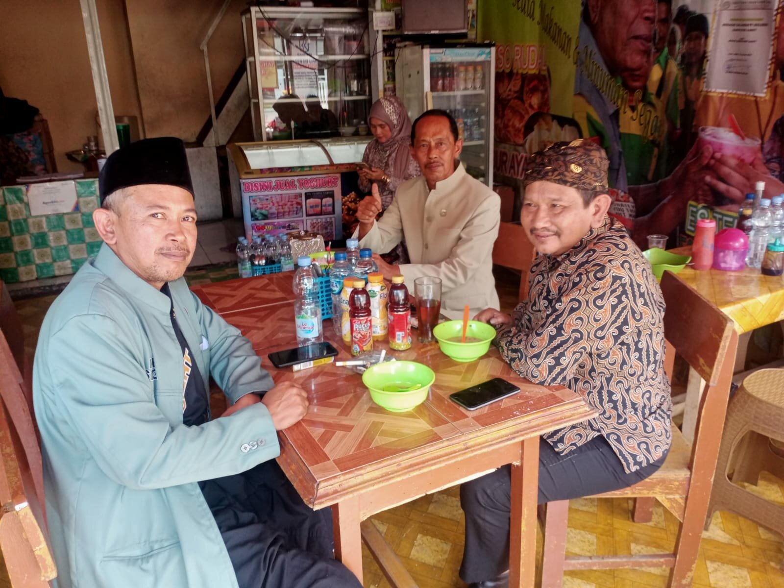 Dua tokoh Kab. Garut (H. Holil Aksan dari Garut Utara, H. Oos dari Garut Selatan yang di saksikan oleh Taufik Hidayat anggota DPRD Garut dari Fraksi PAN) sedang berdiskusi di Kedai SINAR GARUT milik Aep Saepudin Kabiro media online Tintajabar.com di Jl. Otista No. 164 Tarogong Kaler tentang program pemberdayaan ajengan/guru ngaji, dimana intinya agar pada Hari Jadi Garut ke 209 bagaimana caranya supaya Bupati dan DPRD Garut membuat Perbup/Perda tentang SMP (Siswa Mengaji di Pesantren).