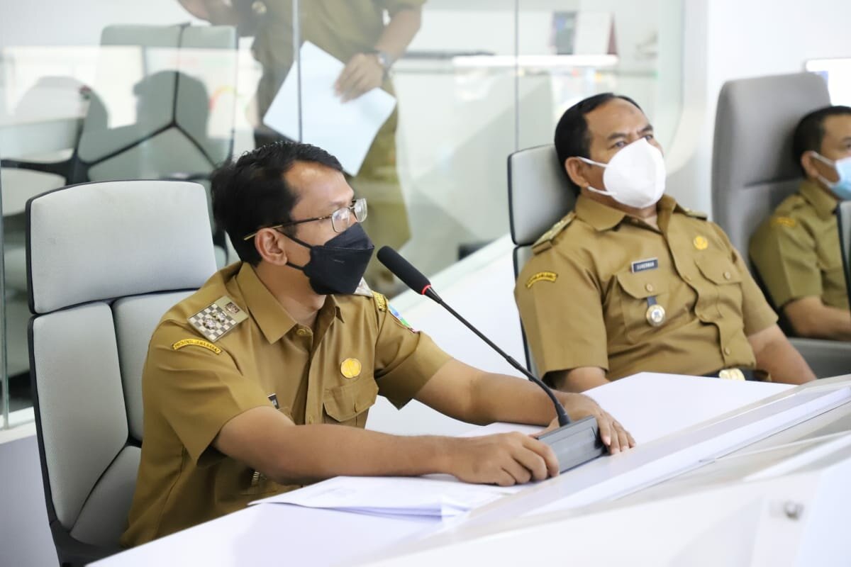 TINTAJABAR.COM, GARUT – Wakil Bupati (Wabup) Garut, dr. Helmi Budiman, memimpin Rapat Koordinasi (Rakor) terkait evaluasi pelaksanaan Pemberlakuan Pembatasan Kegiatan Masyarakat (PPKM) bersama dengan para Camat dan Kepala Puskesmas di Kabupaten Garut yang diselenggarakan secara virtual, di Gedung Command Center, Kecamatan Garut Kota, Kabupaten Garut, Selasa (10/8/2021).