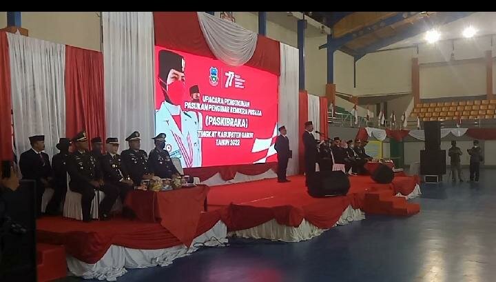 TINTAJABAR.COM, GARUT – Upacara Pengukuhan Pasukan Pengibar bendera Pusaka (Paskibra) Tingkat Kabupaten Garut 2022 Dengan Di Beberapa Kecamatan dan sekolah yang ada di Kabupaten Garut, yang diselenggarakn di Sarana Olah Raga (SOR), RAA Adiwijaya yang ada di wilayah Ciateul Kecamatan Tarogong Kidul Kabupaten Garut, pada hari Senen tanggal (15/08/22)