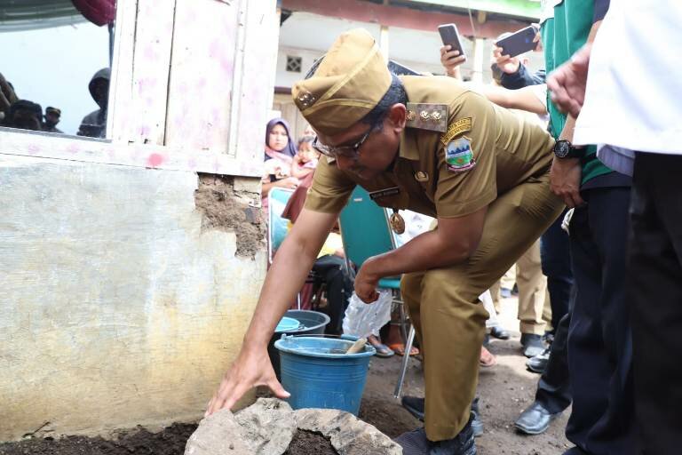 TINTAJABAR.COM, GARUT – Bayongbong – Wakil Bupati (Wabup) Garut, dr. Helmi Budiman, me- launching Gebyar Perbaikan Rumah Tidak Layak Huni (Rutilahu) dari Badan Amal Zakat Nasional (Baznas) Kabupaten Garut untuk 87 penerima manfaat di Kabupaten Garut serta melaksanakan peletakkan batu pertama perbaikan rutilahu, yang dilaksanakan di Desa Bayongbong, Kecamatan Bayongbong, Kabupaten Garut, Senin (10/10/2022).