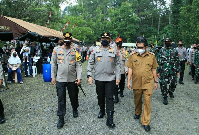 TINTAJABAR.COM, BANDUNG – Wakapolda Jabar Brigjen Pol.Drs Eddy Sumitro Tambunan M.Si., didampingi Pejabat Utama Polda Jabar telah melaksanakan kegiatan peninjauan Gebyar Vaksin Presisi TNI,Polri dan Pemerintahan Kabupaten Bandung Barat.